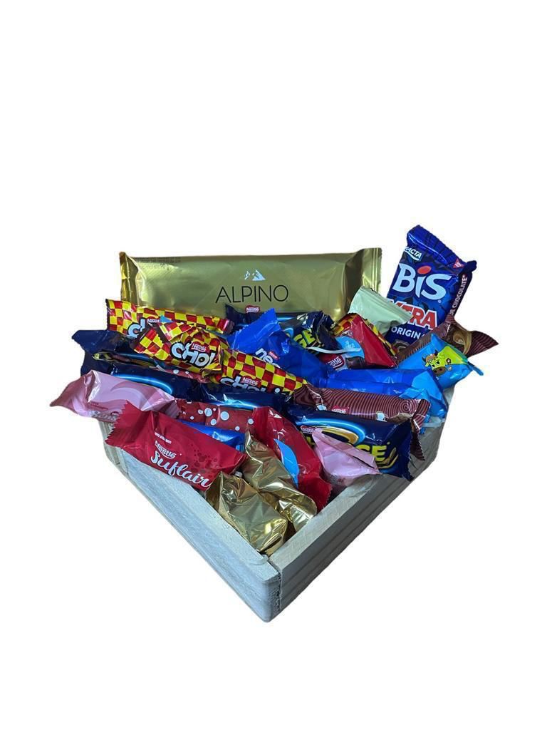 Cesta de chocolate no coração